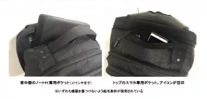 パソコン、タブレット類の収納ポケットは柔らかい素材でできており、傷が付くのも防いでくれます。