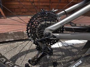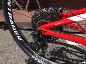 SRAM GX Eagle 1×12スピードでスプロケットは10-50Tと幅広いギア比なので、登りも下りも思いっきり楽しめる万能マウンテンバイクです(*´∀`*)♪