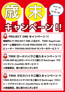 2017年の歳末キャンペーンでは『PROJECT ONEキャンペーン』、『ロードバイクご購入キャンペーン』、『FX3ご購入キャンペーン』の3つをご用意!!