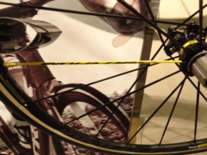 前後共にスポークが一本ずつだけマビックイエローになっています。
