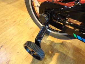 簡単に脱着できる補助輪、全面チェーンカバー、ハンドル位置の調整自由度が高いステム等の装備が
