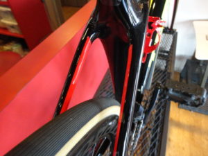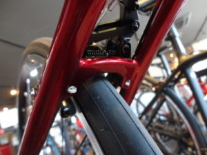 ↓リムブレーキではRrブレーキを装着させるためアーチ台座を作ります。↓