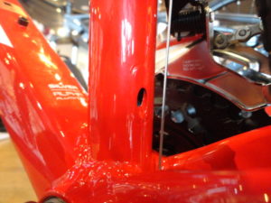 これはトップチューブを下から見た状態です。
