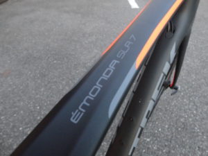 トップチューブには「EMONDA SLR」と記載されるのみ。