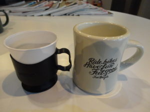 (比較用にお店で出すコーヒーカップを並べてみました。)