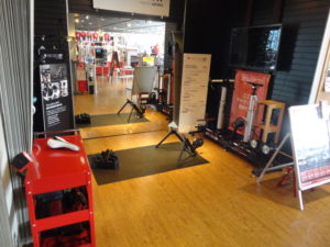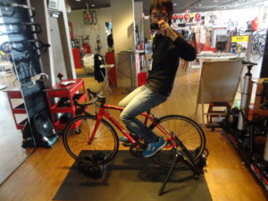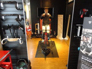 ここで完成したバイクをローラー台にセット・実際に乗っていただきます。