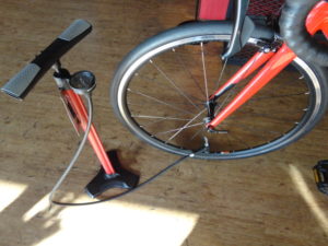 ②前後輪の脱着、ポンプの使い方