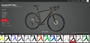 BBのベアリング材質(スチール or セラミック)、ヘッドセット材質(アルミ or カーボン)も選べます。