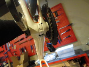 下作業が終わったら、ワイヤーの長さ調整、部品組み付け、ブレーキ・変速調整・・・と続きますが、