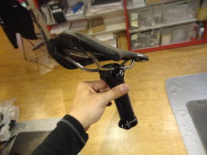 (ホイールやサドル、シートマストも光に当てて傷、異常が無いか確認します。)
