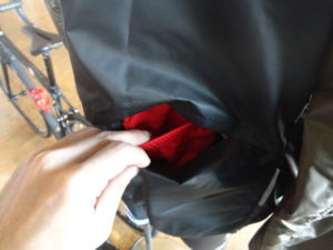 背中は貫通式でジャージのバックポケットから直接出し入れします。