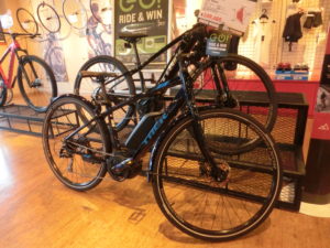 店頭にはクロスバイクタイプのVERVE+、サスペンション搭載でアクティブに乗れるDualSport+の2台が試乗車として展示中!