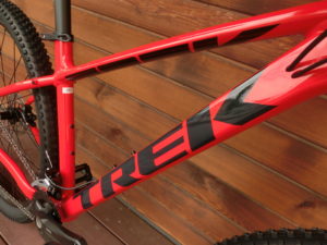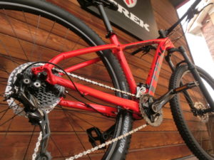 新型リアディレーラーを装備、エア式フォークで軽くなり、昨年のコイル式フォークと比べて調整しやすくなりました。