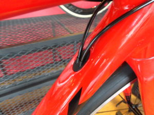 リムブレーキの台座が無くなるのでシートステーのしなりが大きくなります。