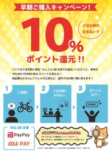 以前よりバイクをご購入時に現金もしくはPayPayで決済頂くと、