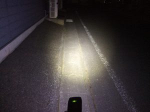 (IonElite Rを店舗裏道にて。1,000ルーメンは伊達じゃない。)