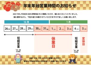2021年末のご挨拶と2022新春初売りのお知らせ