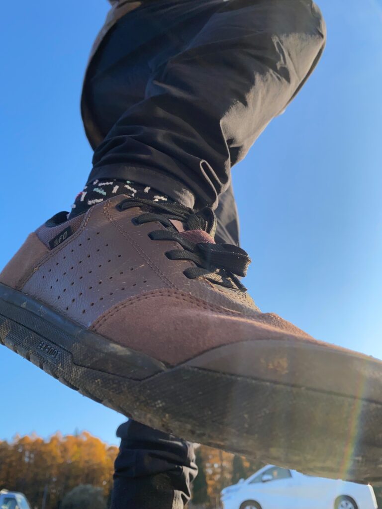 スケートシューズに似たカジュアルな見た目ですが、丈夫でクッション性が高く、MTBシューズ特有の特殊なラバーソールにより足の暴れを抑えてくれるのですが、2FOシューズはミッドソールのクッションとラバーソールの相性が良く、疲れも少なく、ペダルとの一体感に驚くはずです。