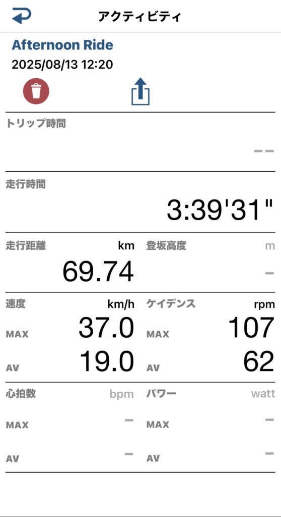 平坦は時速25〜28kmでケイデンス90前後をキープできたので少し成長した気がする!