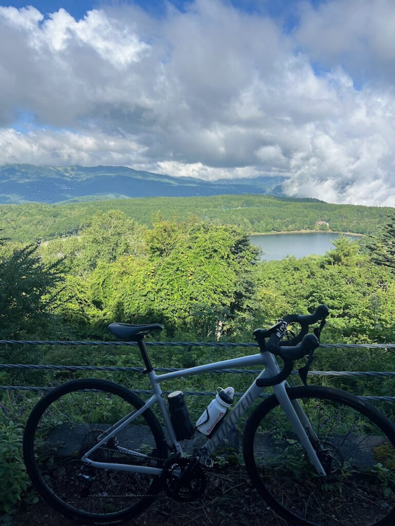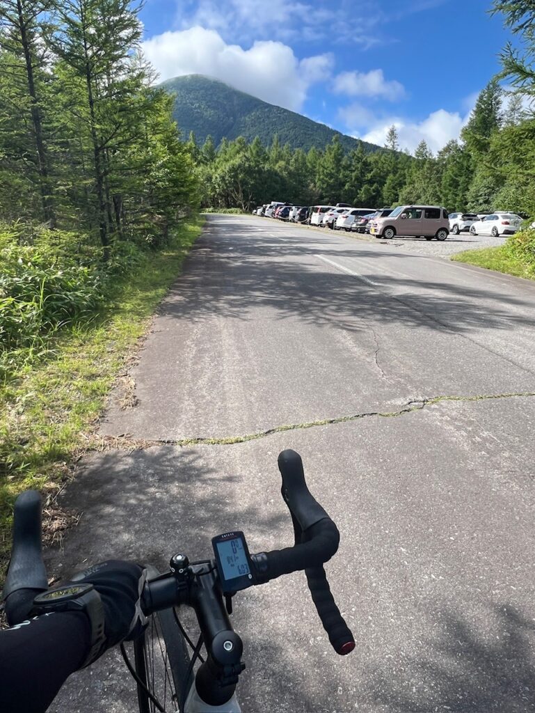 なるべく軽量で最低限の荷物を背負い大河原峠まで蓼科スカイラインを登る🚴♀️