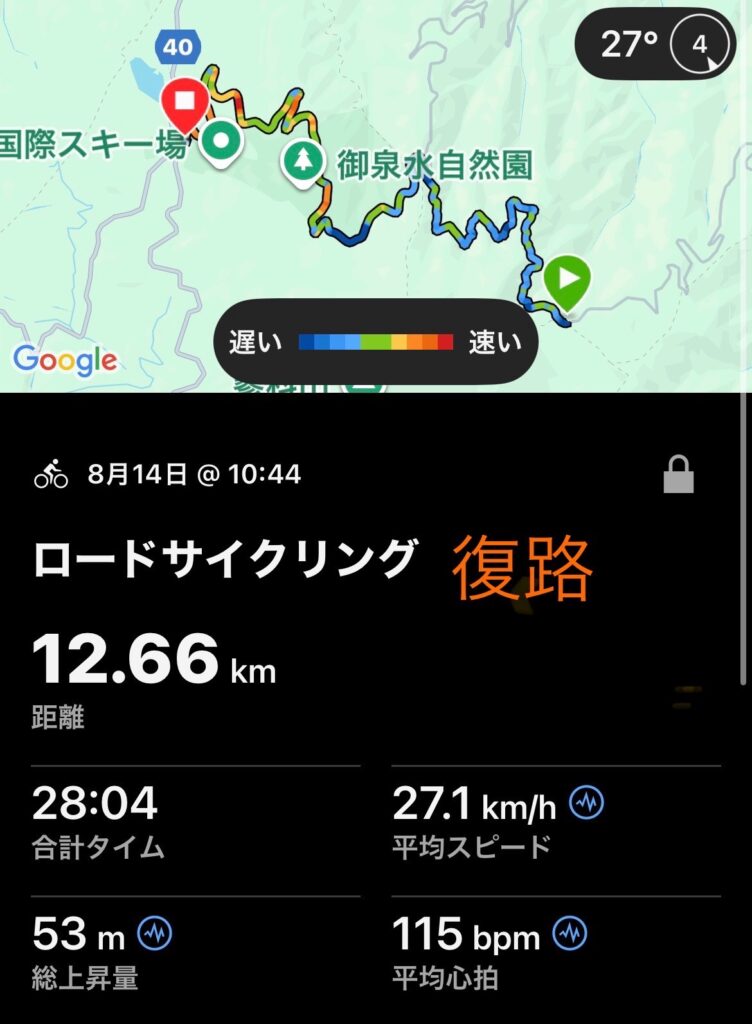 カーブに入る手前で徐々に減速して、視線と体重移動を意識しながら下ることが出来た🚴♀️