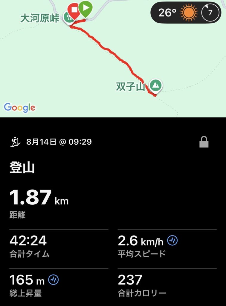 ロングパンツを履き、シューズを履き替え、双子山へ登山開始(登山)