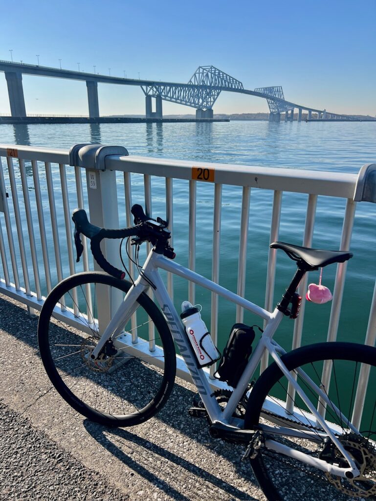 東京湾を眺めながら普段は自転車通行禁止の場所を走れるというのが魅力✨
