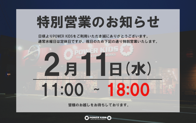 本日は特別営業のお知らせです。